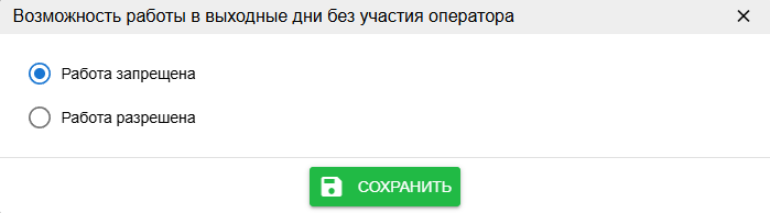 Возможность работы в выходные дни без участия оператора. Переопределяет глобальную настройку при создании общего режима работы.
