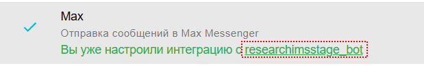 Если настройка интеграции с MAX ранее не выполнялась, вам будет предложено пройти в соответствующее меню для её настройки.