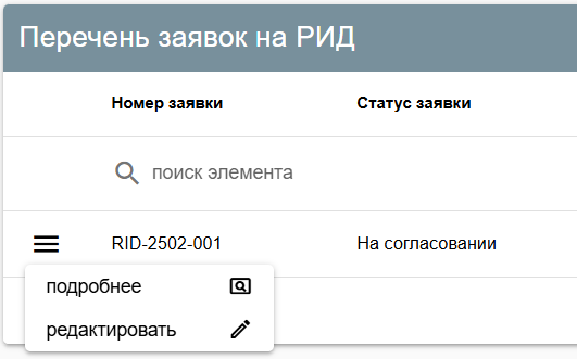 Все созданные заявки можно посмотреть через пункт Мои заявки в боковом меню РИД.